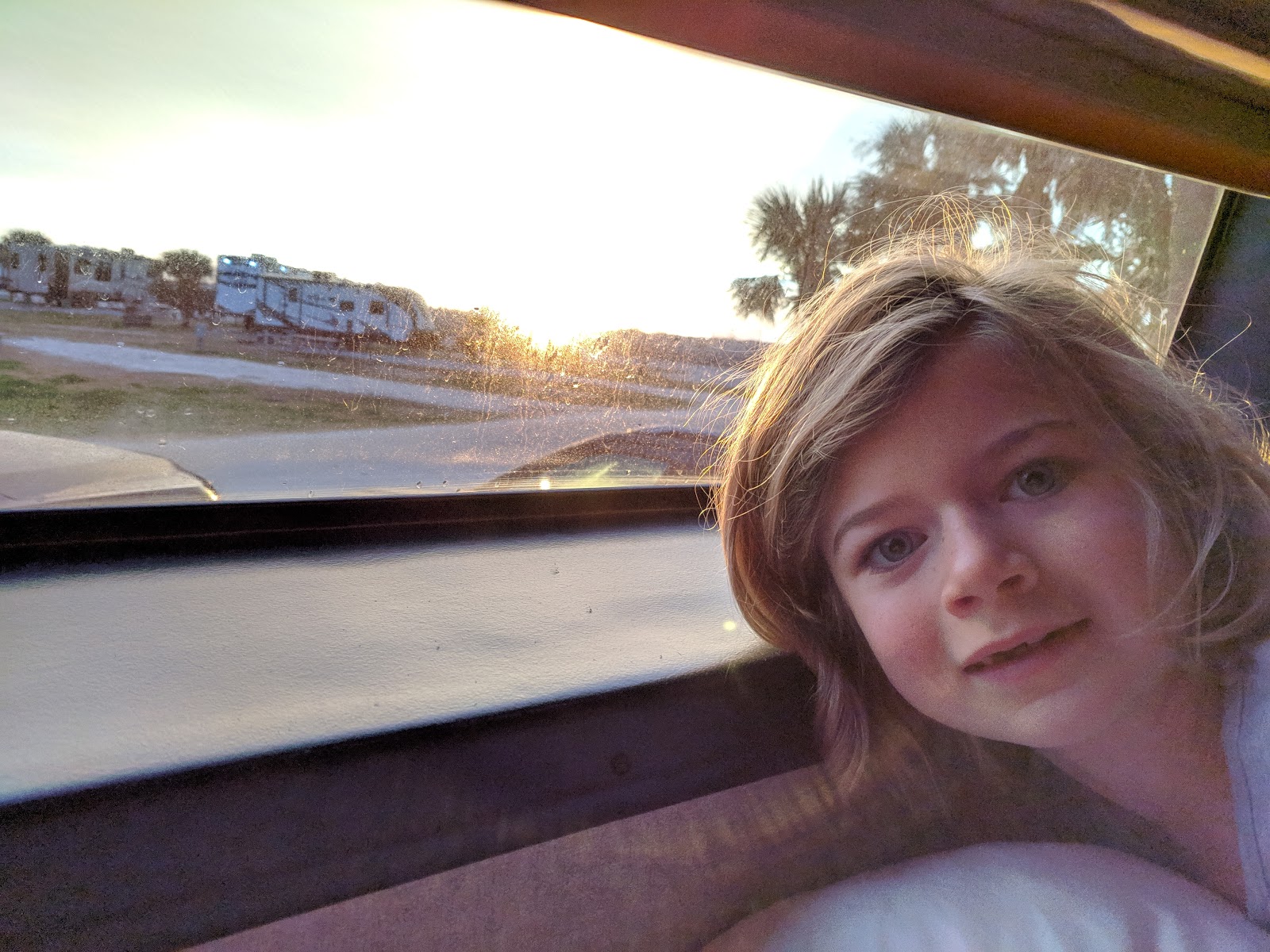 Kennedy crawled into our bed around 0700. I opened the blind and she and I watched the sunrise. It was the highlight of my day!