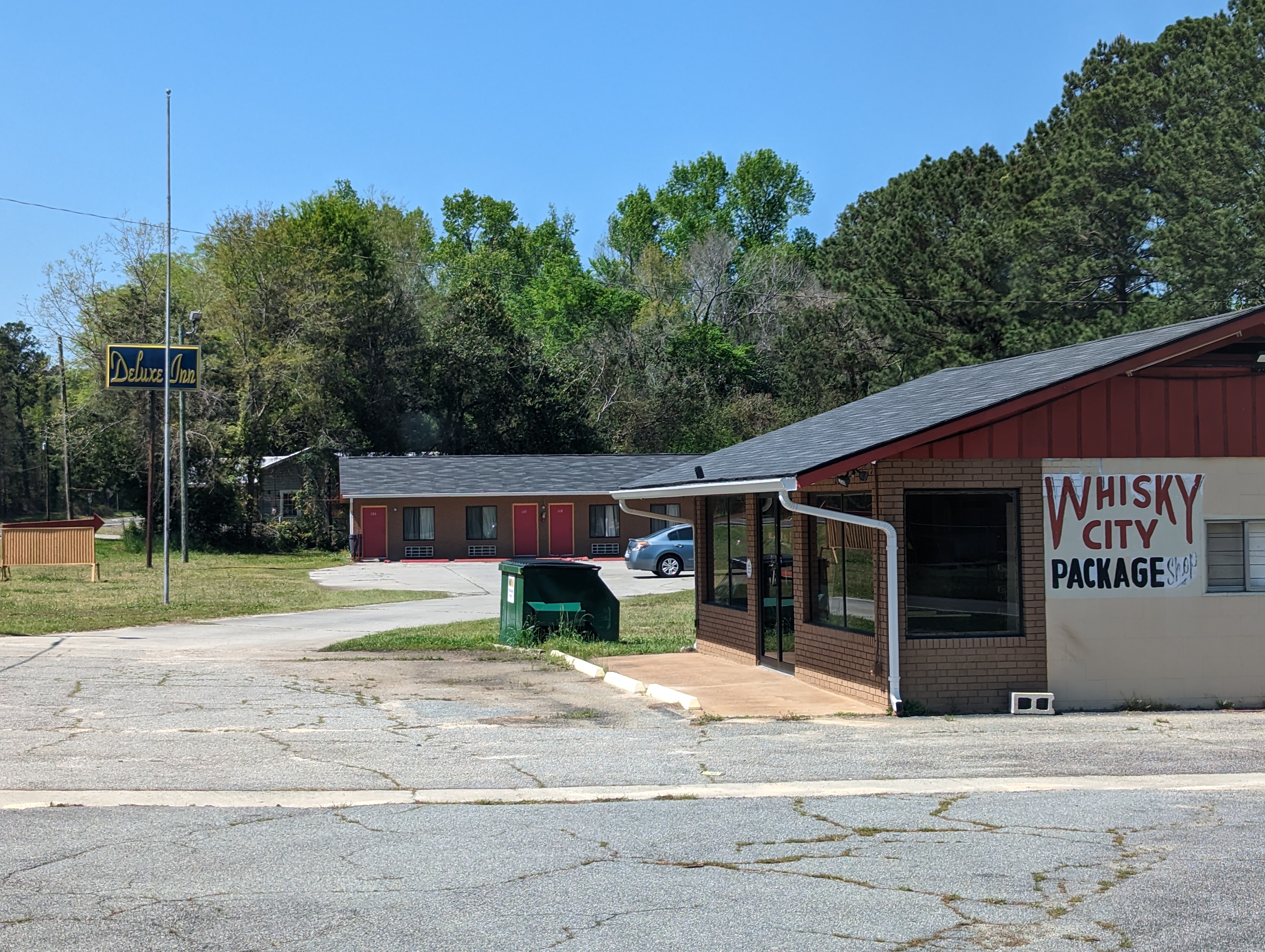 Open the pic and you can see Whisky City Package store is right next to the Deluxe Inn! Check out the bright red doors on the rooms. I'll bet this place is rocking on Saturday night!Back at camp we did some fried Pacific Oysters on the flattop. The turned out great!